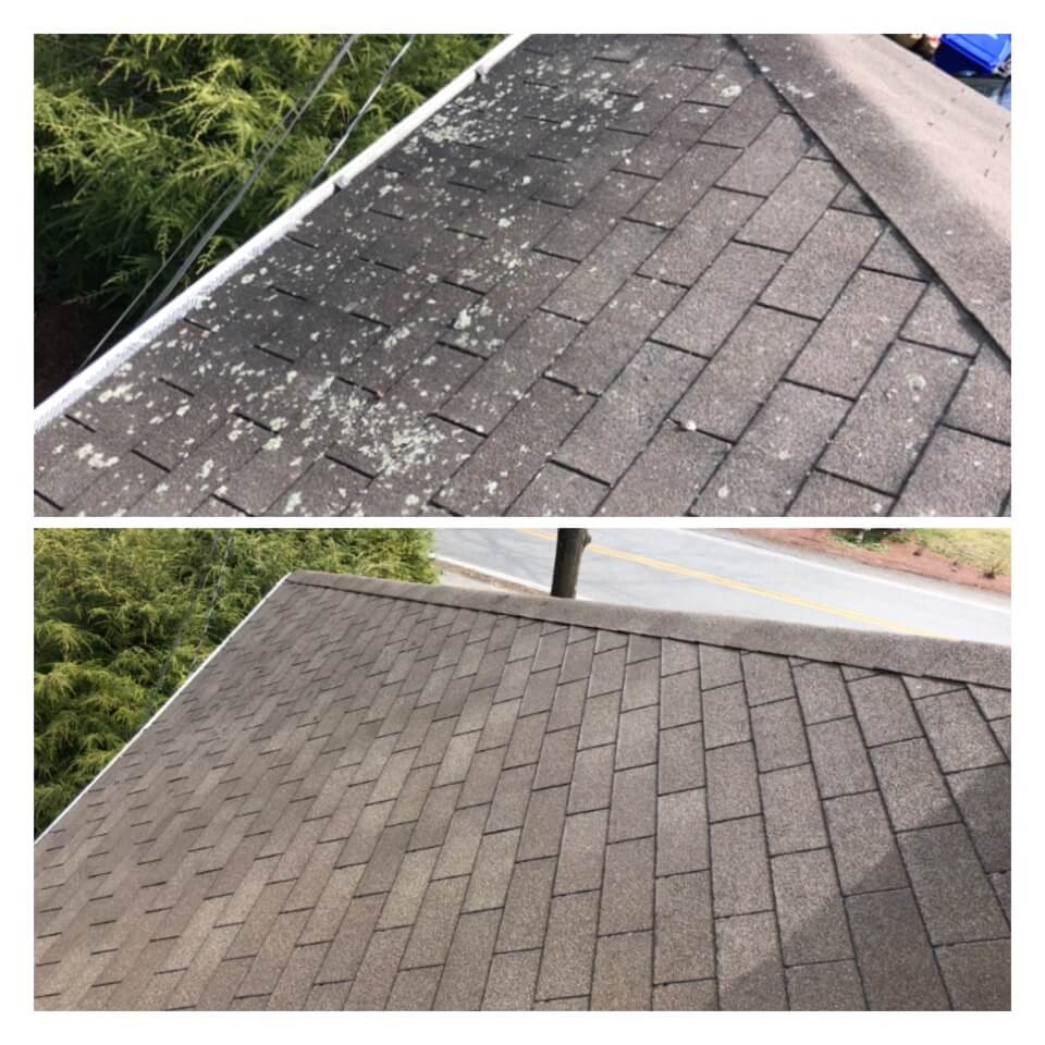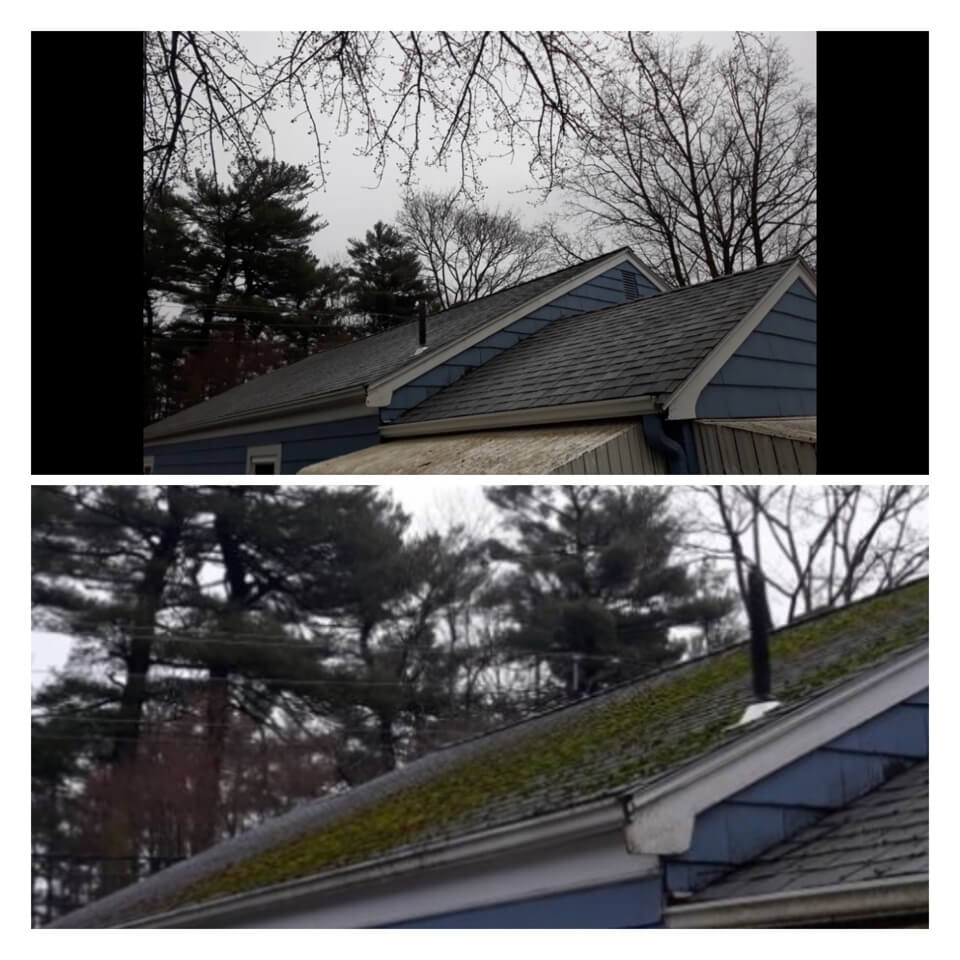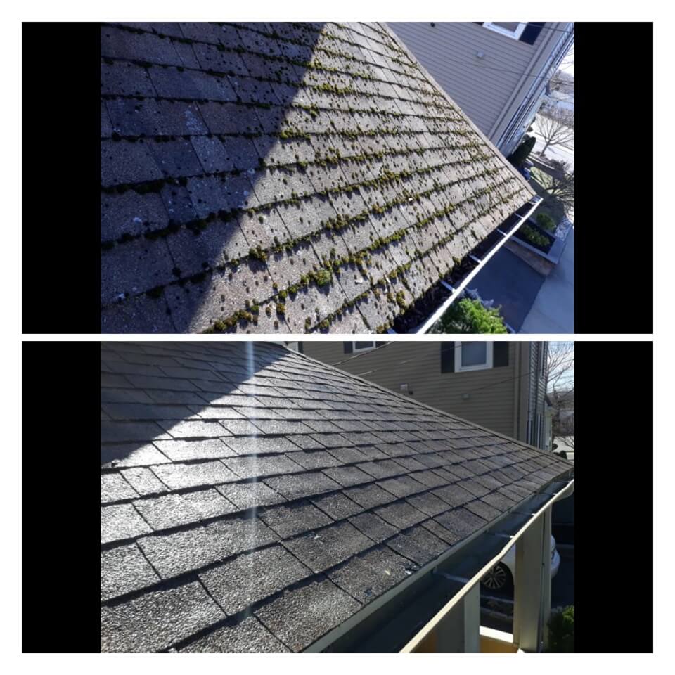 HiCleaners is the most experienced company in Manchester by the sea, MA that deals with roof washing and roof soft washing. All of our employees are trained to recognize precise solution mixing ratios to provide you with the safest and most effective soft washing service. Roofs are a commonly neglected part of a house due to the fact that most people don’t have ladders to access it, so it is very easy to just leave it alone and forget about problems that may start to arise. Just like many home owners, discoloration and small bits of moss on a roof can be overlooked because of the misconception that it is just aesthetic. However, it isn’t just aesthetic, the moss slowly lifts the granules off the shingles which in turn shorten the life of the shingle. The moss also spreads, just like any bacteria if it is left alone for too long, it can quickly become a problem that spirals out of control. Call HiCleaners for a free quote, we only use the most advanced eco-friendly solutions and equipment to make sure the job is done right, for the safety of the employees, your plants, grass, pets, and children.
