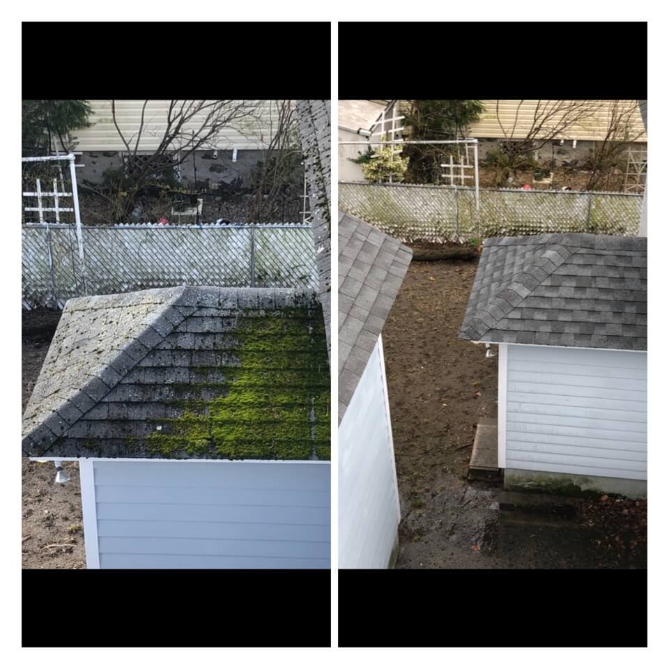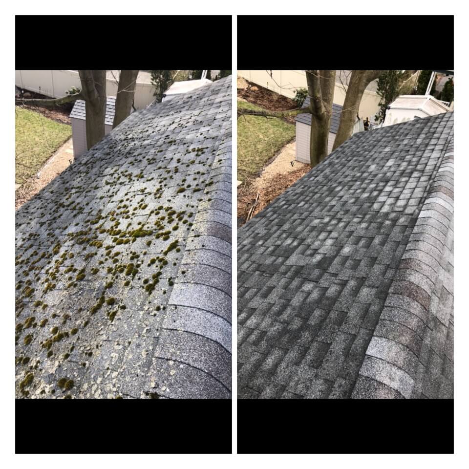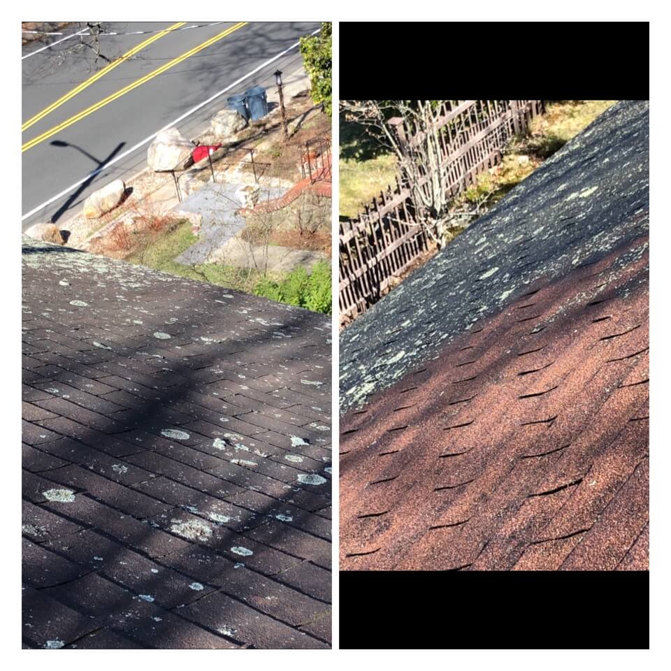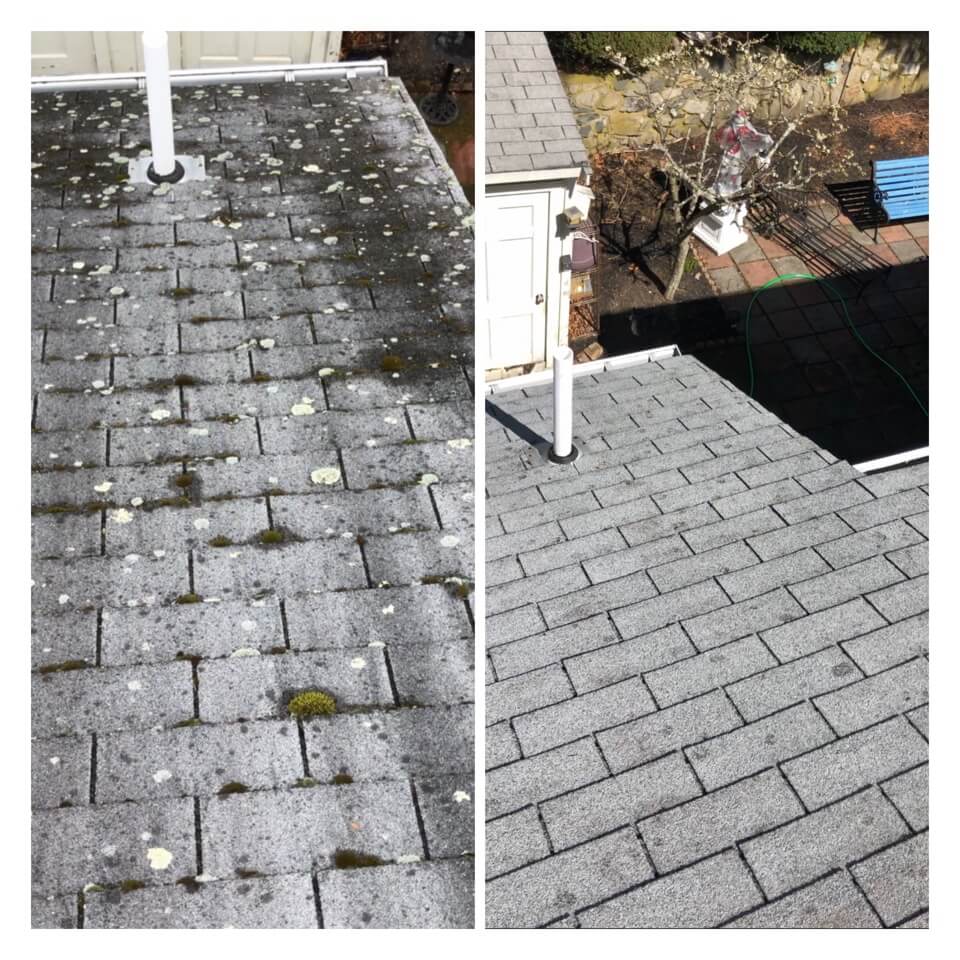 HiCleaners is the most experienced company in Manchester by the sea, MA that deals with roof washing and roof soft washing. All of our employees are trained to recognize precise solution mixing ratios to provide you with the safest and most effective soft washing service. Roofs are a commonly neglected part of a house due to the fact that most people don’t have ladders to access it, so it is very easy to just leave it alone and forget about problems that may start to arise. Just like many home owners, discoloration and small bits of moss on a roof can be overlooked because of the misconception that it is just aesthetic. However, it isn’t just aesthetic, the moss slowly lifts the granules off the shingles which in turn shorten the life of the shingle. The moss also spreads, just like any bacteria if it is left alone for too long, it can quickly become a problem that spirals out of control. Call HiCleaners for a free quote, we only use the most advanced eco-friendly solutions and equipment to make sure the job is done right, for the safety of the employees, your plants, grass, pets, and children.